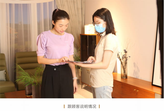 耐心解答客户提出的关于家具保养的提问,同时将MK体育产品使用说明书送给客户,尔后教客户如何扫描产品二维码进行防伪鉴定,请顾客对货物进行验收检查,然后正式签收《产品配送单》。